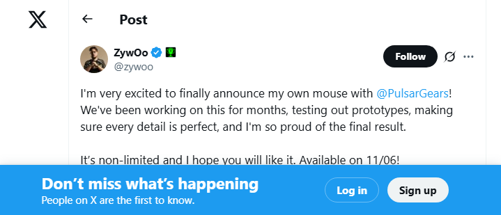 “I’m very excited to finally announce my own mouse with Pulsar!” ZywOo said in a social media post. “We’ve been working on this for months, testing out prototypes for months, making sure every detail is perfect, and I’m so proud of the final result.”