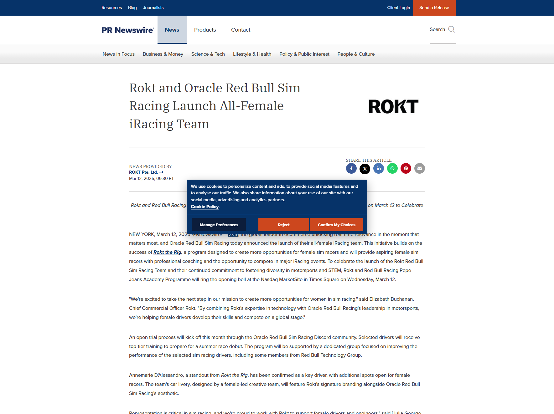 “We’re excited to take the next step in our mission to create more opportunities for women in sim racing,” said Elizabeth Buchanan, Chief Commercial Officer of Rokt. “By combining Rokt's technology expertise with Oracle Red Bull Racing's leadership in motorsports, we’re helping female drivers develop their skills and compete globally.”
