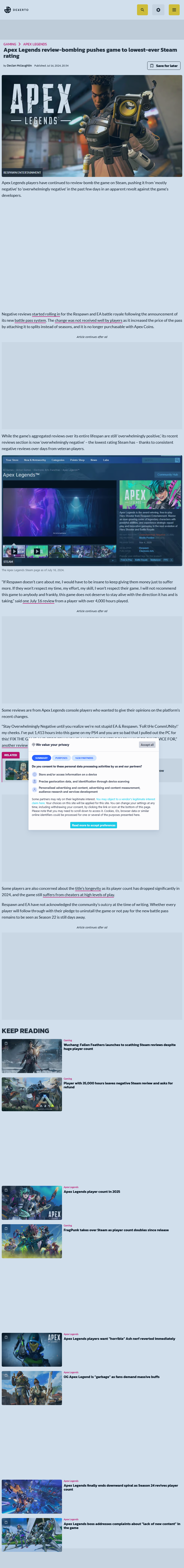 As a result of these changes, Apex Legends’ recent review score on Steam has plummeted to overwhelmingly negative, fueled by more than 24,000 negative reviews posted in the first half of July.
