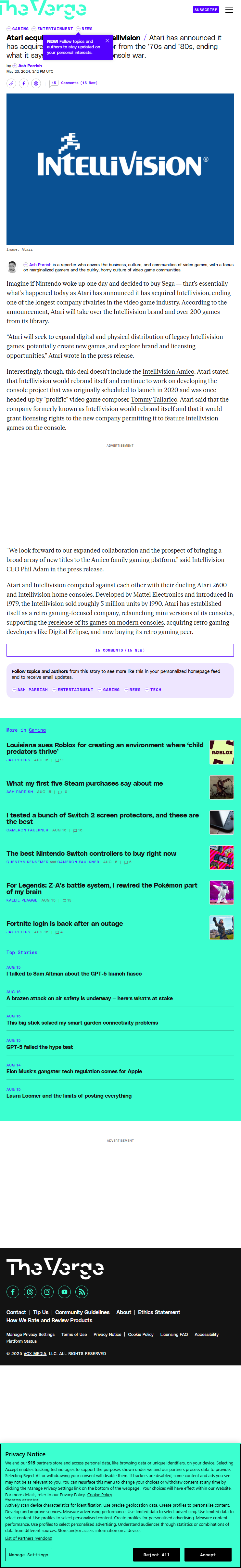 “Atari has been a valuable partner and we have every confidence they will be a responsible steward of the storied Intellivision brand,” said Phil Adam, CEO of Intellivision Entertainment. “We look forward to our expanded collaboration and the prospect of bringing a broad array of new titles to the Amico family gaming platform.”