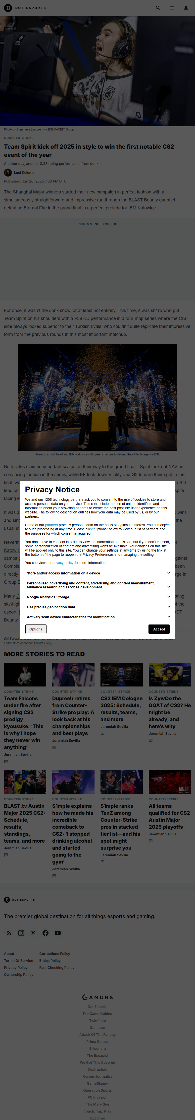 Team Spirit kicked off 2025 with a bang, securing victory in the first major CS2 event of the year. The Shanghai Major champions delivered a flawless performance in the BLAST Bounty Gauntlet, defeating Eternal Fire in the grand final in a dominant fashion, setting the stage for IEM Katowice.