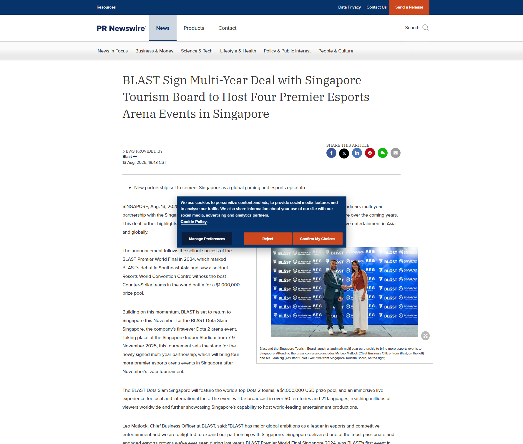 The deal comes on the heels of the highly successful BLAST Premier World Final in December 2024, which marked BLAST’s first appearance in Southeast Asia. Held at the sold-out Resorts World Convention Centre, the event featured the world’s top Counter-Strike teams battling for a $1 million prize pool and drew thousands of fans from across Asia and beyond.