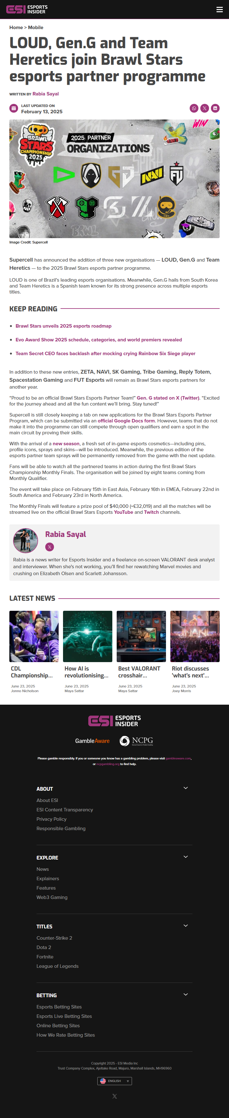 Supercell has announced the addition of three new organizations—LOUD, Gen.G, and Team Heretics—to the 2025 Brawl Stars Esports Partner Program.