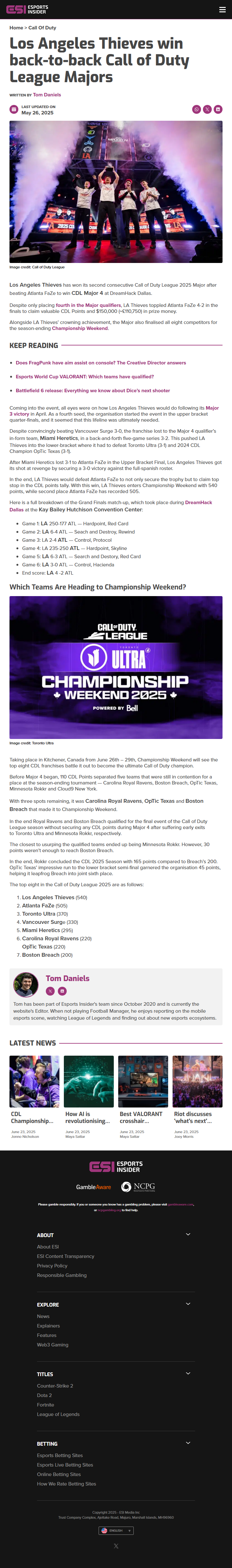 Los Angeles Thieves have solidified their place at the top of the Call of Duty League (CDL) standings after capturing back-to-back Major titles, this time emerging victorious at Major 4 held during DreamHack Dallas. The team defeated rivals Atlanta FaZe 4-2 in an intense Grand Final, taking home $150,000 in prize money and crucial CDL Points ahead of the season-ending Championship Weekend.