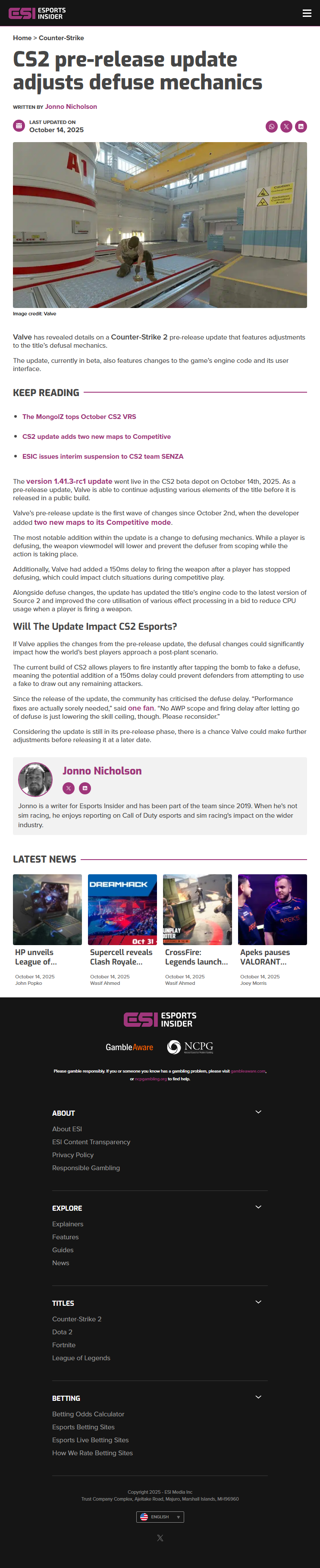 Valve has rolled out a new pre-release update for Counter-Strike 2, introducing key changes to defusal mechanics, engine performance, and user interface behavior. The update, version 1.41.3-rc1, was released to the CS2 beta depot on October 14, 2025, and marks the first significant tweak to core gameplay systems since two new Competitive maps were added on October 2.