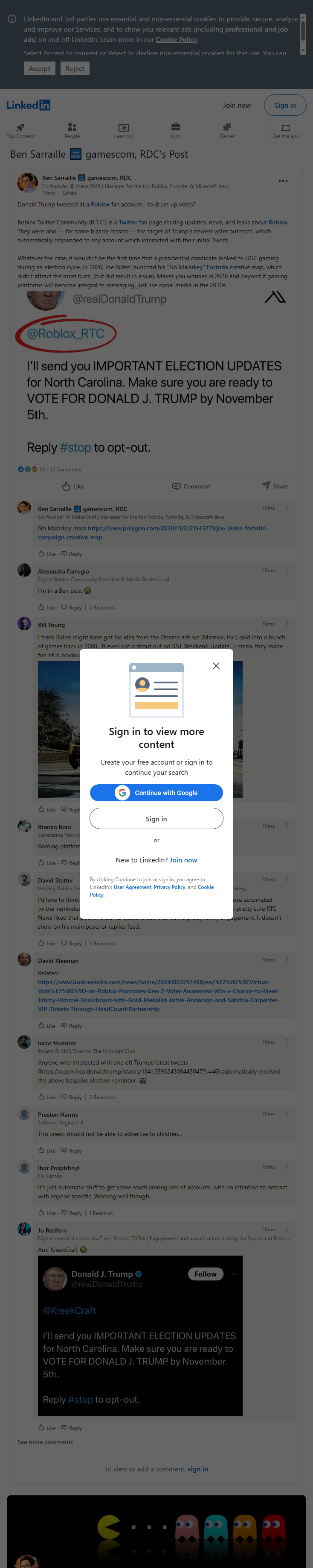 In an unusual move, former President Donald Trump tweeted at the Roblox Twitter Community (R.T.C.), a fan account focused on updates and news about the gaming platform. The tweet appears to be an attempt to rally votes, but many users are puzzled by his choice to engage with a fan account instead of the official Roblox page.