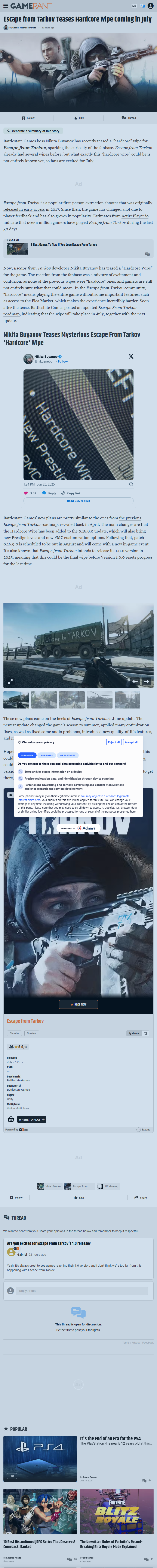 Although Battlestate Games has yet to confirm the full details, the phrase “hardcore wipe” alone has ignited speculation. As one fan commented online, “It’s going to either be the best update ever or absolutely brutal — no middle ground.”