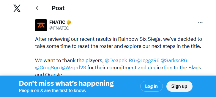 The move represents a notable shift for Fnatic, which has been involved in Rainbow Six esports since 2018. This is not the first time the organisation has stepped away from a roster, having previously disbanded its lineup in 2023 before returning with a new squad in March 2024.