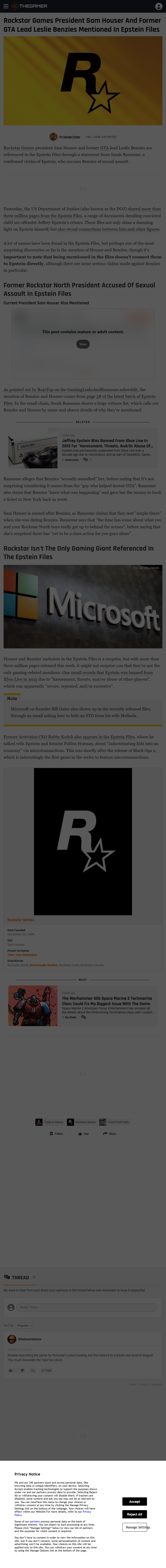 Former Rockstar North President Mentioned in Epstein Files
