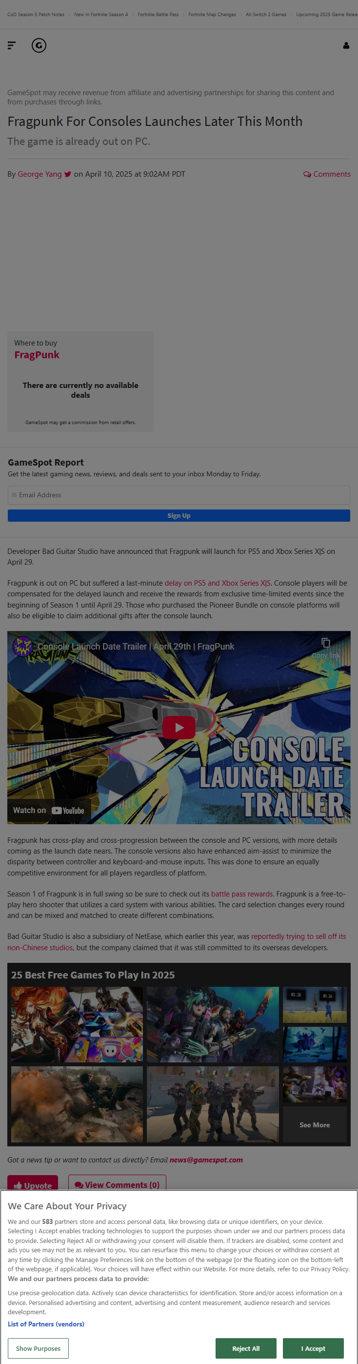 FragPunk, the fast-paced team-based shooter developed by Bad Guitar Studio and published by NetEase Games, will officially launch on Xbox Series XS and PlayStation 5 on April 29, 2025. The announcement was made via the game’s official social media channels on April 10, following a brief delay from its originally planned March console release.