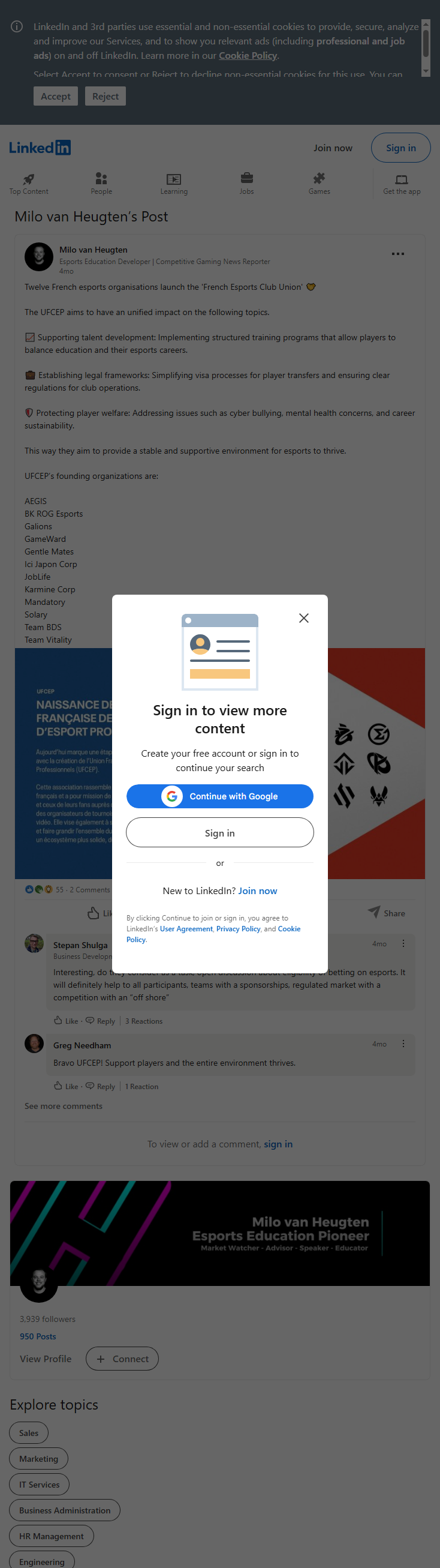 The founding organizations of the UFCEP include some of France's top esports teams and institutions, including:
