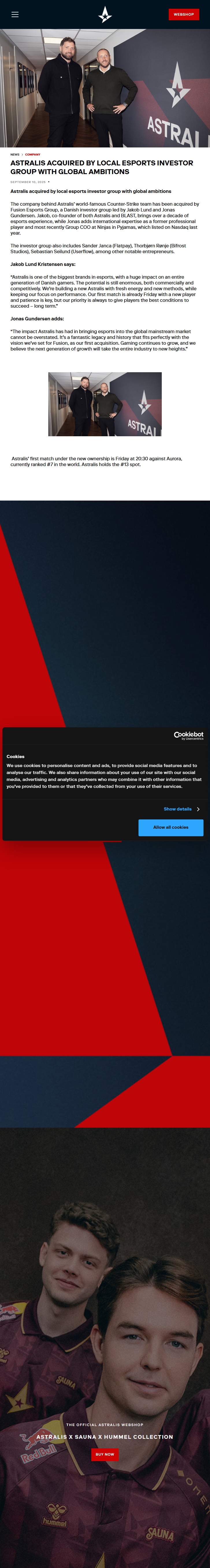 “Astralis is one of the biggest brands in esports, with a huge impact on an entire generation of Danish gamers. The potential is still enormous, both commercially and competitively. We’re building a new Astralis with fresh energy and new methods, while keeping our focus on performance.”