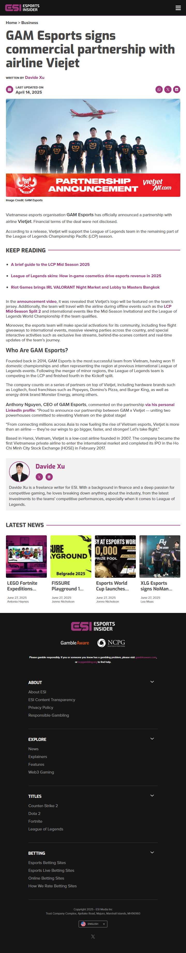 GAM Esports, Vietnam’s most decorated League of Legends team, has announced a new partnership with budget airline Vietjet. While the financial details of the agreement were not disclosed, the deal marks a strategic move as the team enters a crucial phase of the League of Legends Championship Pacific (LCP) season.