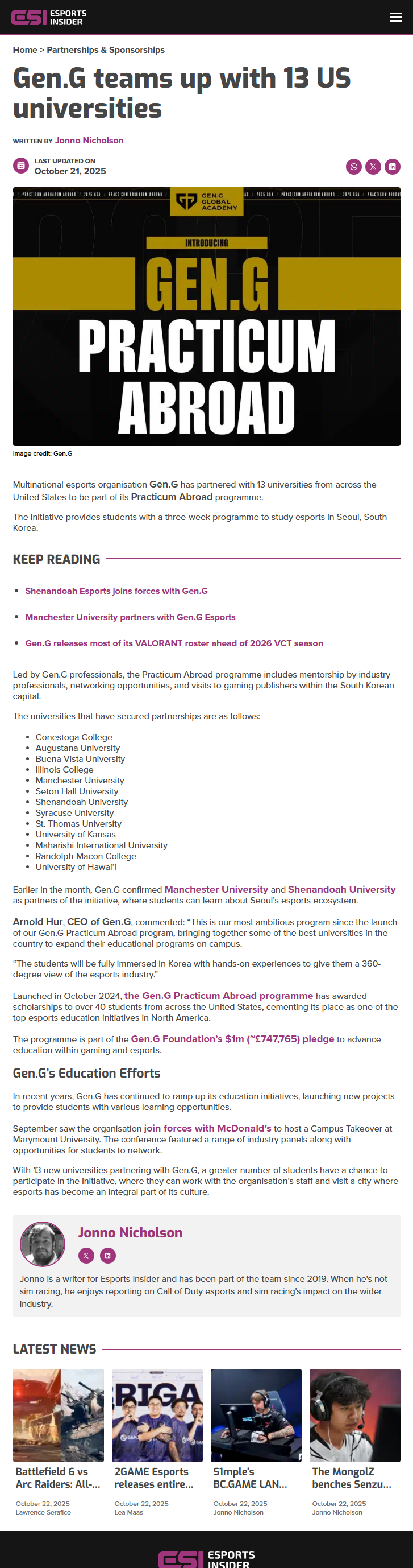 Earlier this month, Gen.G confirmed Manchester University and Shenandoah University as official program partners. These institutions will be sending students to Seoul, where they can fully explore the city's esports infrastructure and learn from leading professionals in the industry.
