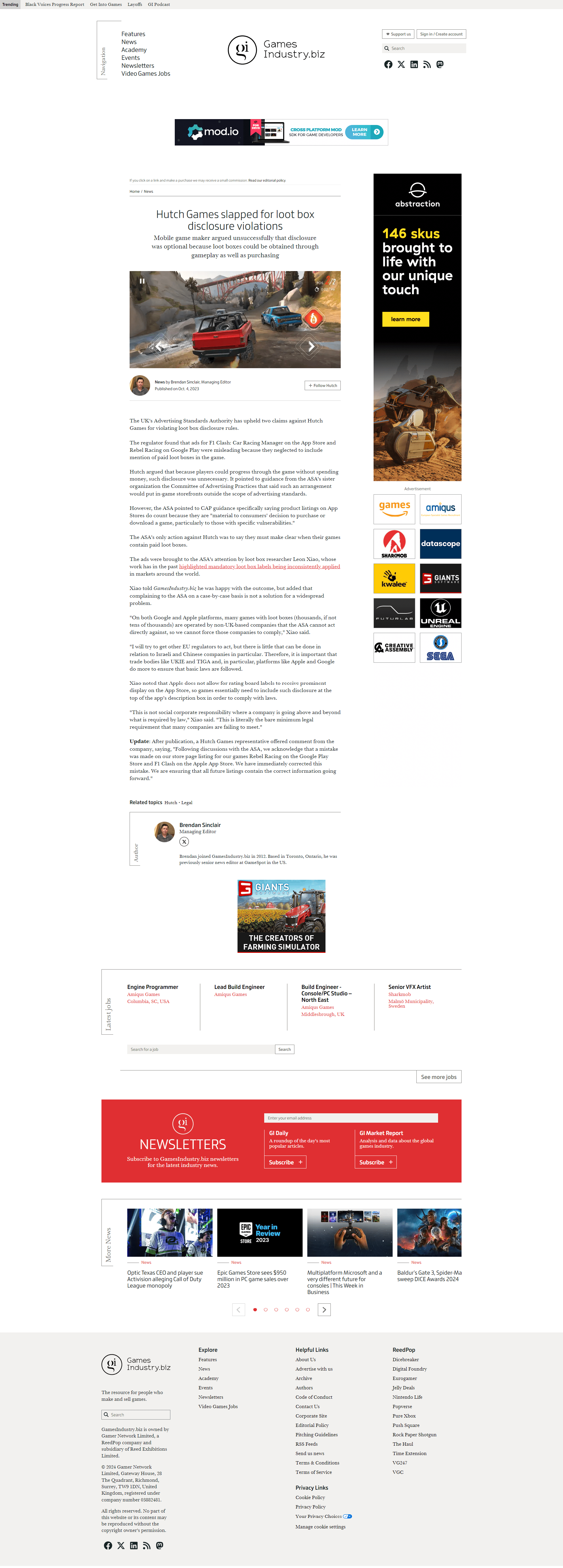 The UK's Advertising Standards Authority (ASA) has ruled against Hutch Games for breaching regulations regarding loot box disclosure. The ASA determined that advertisements for F1 Clash: Car Racing Manager on the App Store and Rebel Racing on Google Play were deceptive because they failed to mention the presence of paid loot boxes in the games. Hutch Games defended their position, arguing that such disclosure was unnecessary because players could advance in the game without spending money.