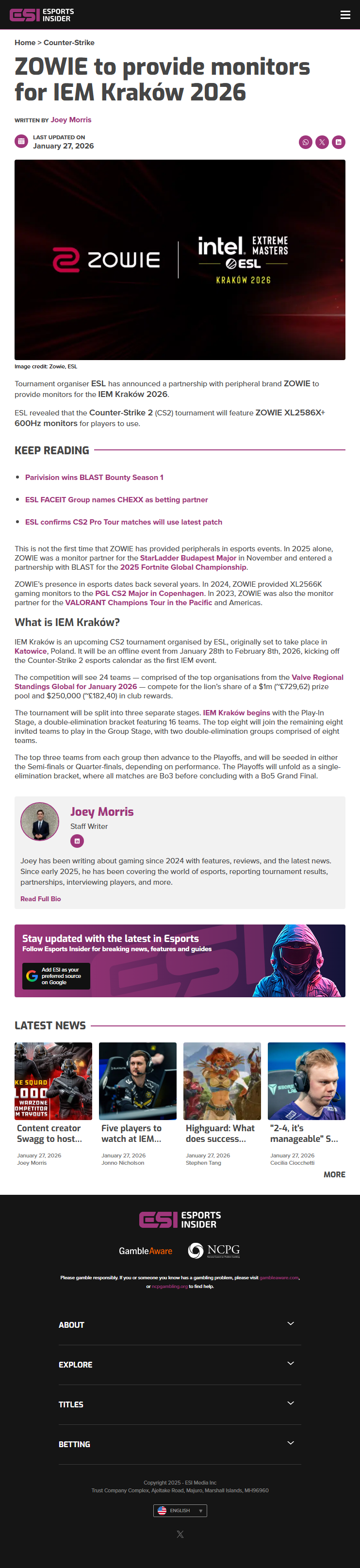 ESL The tournament organizer has just announced a partnership with peripheral's company ZOWIE to supply monitors for the Intel Extreme Masters Kraków 2026. According to release, this move promises to deliver top-tier performance for players in one of the year's biggest CS2 events.