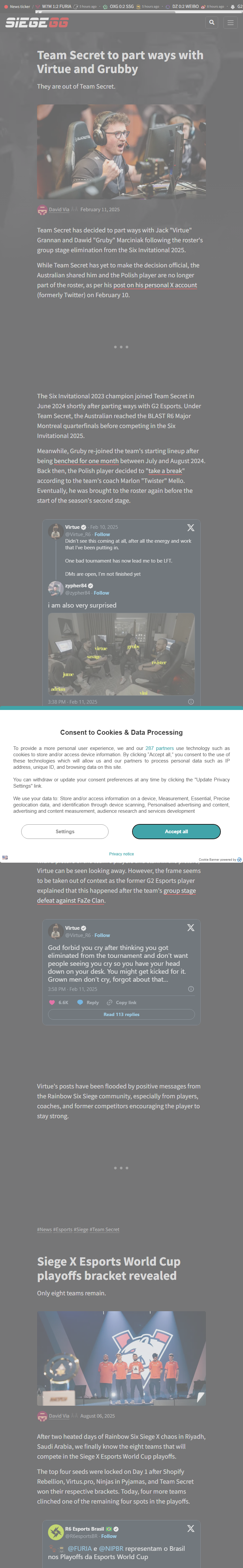 Team Secret CEO John ‘zypher84’ Yao has come under fire after mocking Australian Rainbow Six Siege player Jake ‘Virtue’ Grannan following the team’s early elimination from the 2025 Six Invitational.