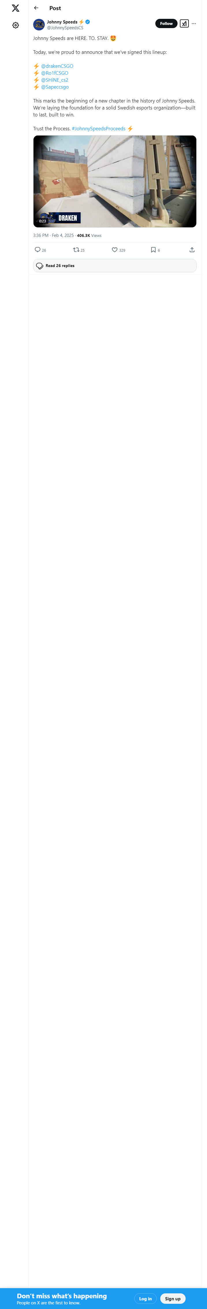 Johnny Speeds has officially announced its launch as an organization, backed by a group of investors. The Swedish team has signed William "draken" Sundin, Kalle "Ro1f" Johansson, Casper "SHiNE" Wennerberg, and Anton "Sapec" Palmgren to their roster. However, there was no update regarding the status of 15-year-old Liam "MaiL09" Tügel, who was part of Johnny Speeds during their recent victory at the Subway Superior League Winter.