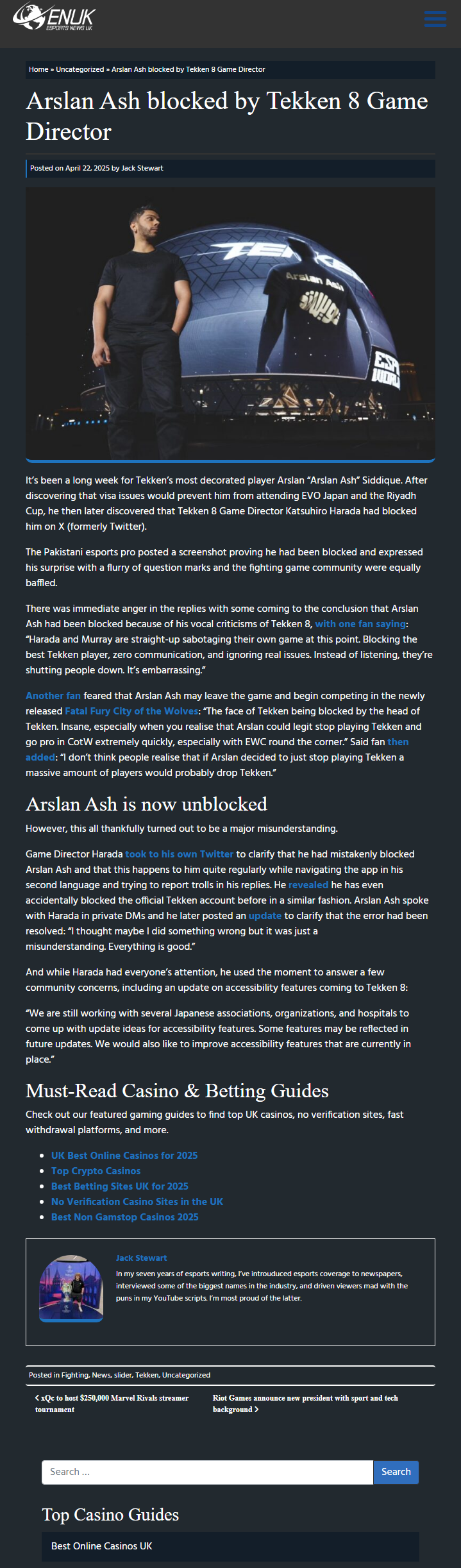 Others warned that such a move could have larger implications for the game’s future. “The face of Tekken being blocked by the head of Tekken. Insane, especially when you realise that Arslan could legit stop playing Tekken and go pro in City of the Wolves extremely quickly, especially with EWC round the corner,” one fan noted. “I don’t think people realise that if Arslan decided to just stop playing Tekken a massive amount of players would probably drop Tekken.”