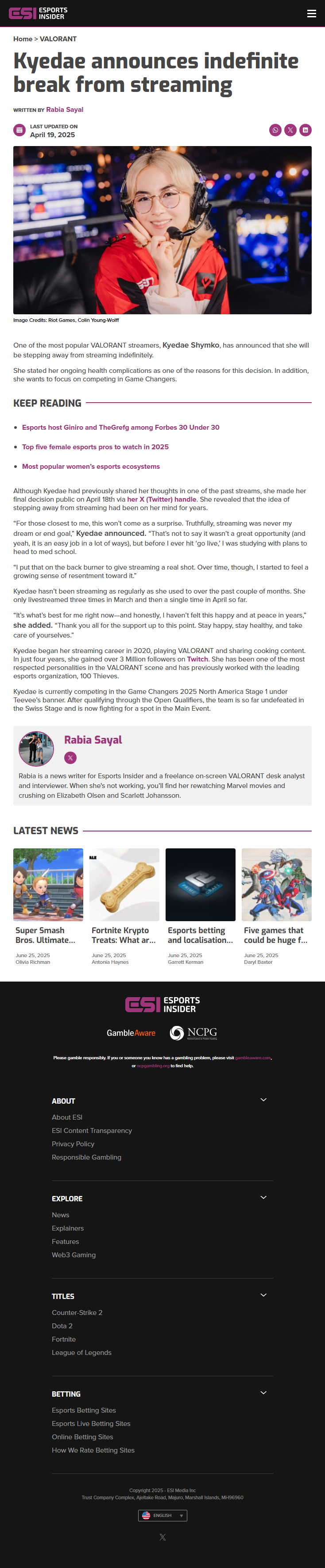 Kyedae, who rose to fame beginning in 2020 through VALORANT gameplay and lifestyle content, amassed over 3 million followers on Twitch in just four years. Her transparency and charisma earned her immense respect within the gaming community, especially during her time with the renowned esports organization 100 Thieves.