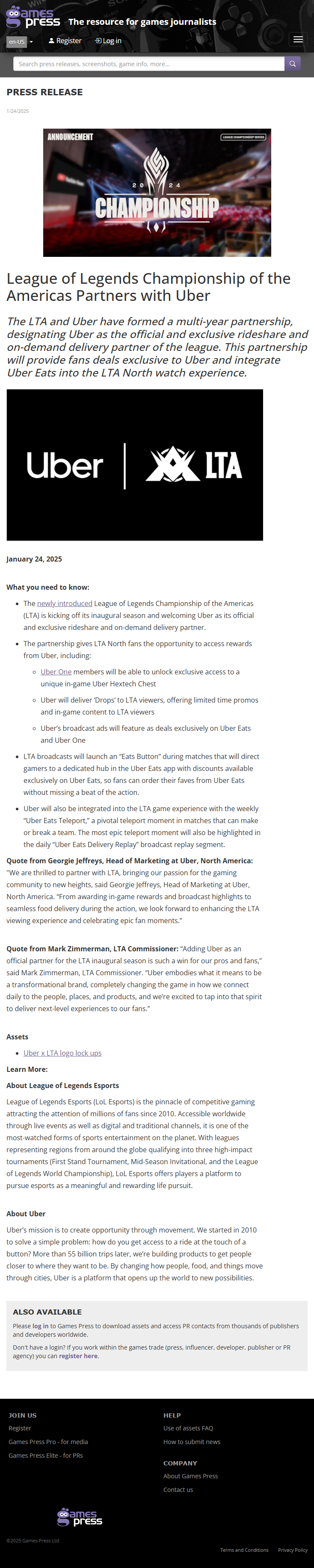 - Uber will offer “Drops” to viewers, providing limited-time promos and in-game content during LTA broadcasts.