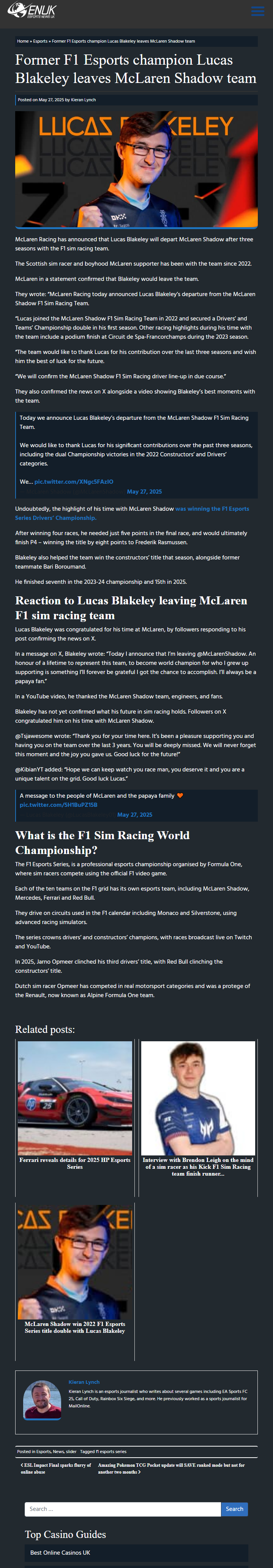 “Lucas joined the McLaren Shadow F1 Sim Racing Team in 2022 and secured a Drivers’ and Teams’ Championship double in his first season,” the statement read. “The team would like to thank Lucas for his contribution over the last three seasons and wish him the best of luck for the future.”