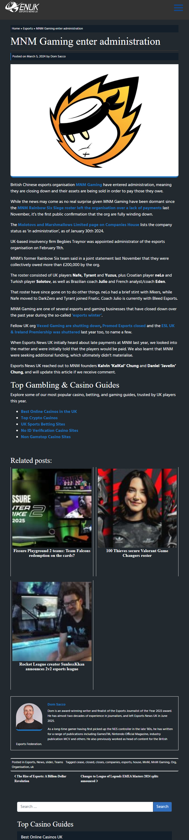 MNM Gaming, a UK-based esports organization, has entered administration, as confirmed by the UK Government platform Companies House. Initially reported by Esports News UK, the organization's official status on the government platform indicates it is "in administration," typically signifying financial insolvency and an inability to meet debt obligations. Consequently, MNM Gaming is undergoing closure proceedings, with its assets being liquidated to settle outstanding debts.