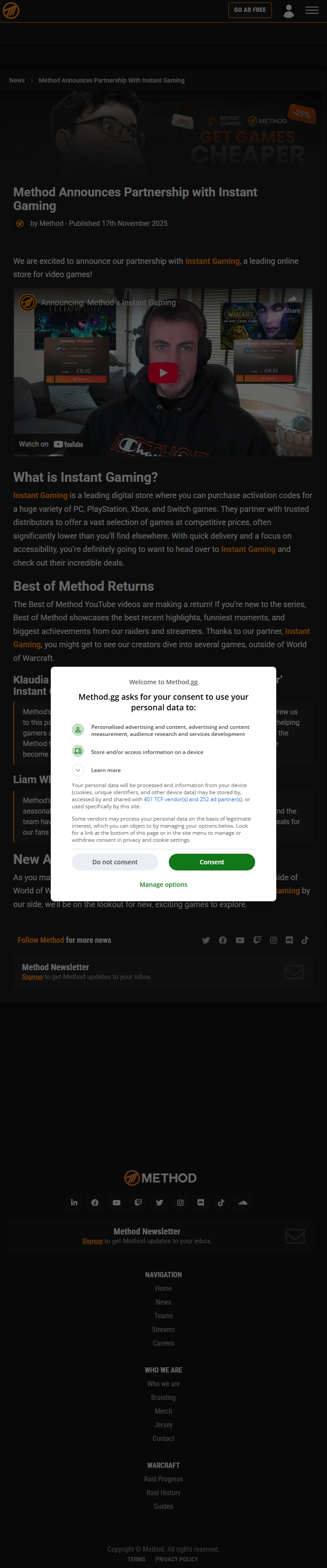 Klaudia Skrzynska, Senior Partner and Affiliate Manager at Instant Gaming, shared her enthusiasm about the collaboration: "Method's community is at the core of what makes them special, and that's what drew us to this partnership. We share the same focus on delivering real value to players – helping gamers access more games with a strong value proposal. Working with Liam and the Method team has been great, and we're looking forward to supporting them as we become part of this amazing community."