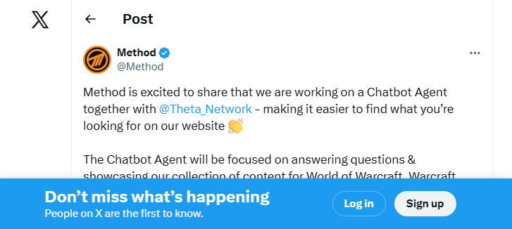 Set to launch later this quarter, the chatbot will use Theta’s AI infrastructure to access Method’s extensive guides and databases. Users will be able to get real-time responses to questions about in-game strategies and content via Method’s website.