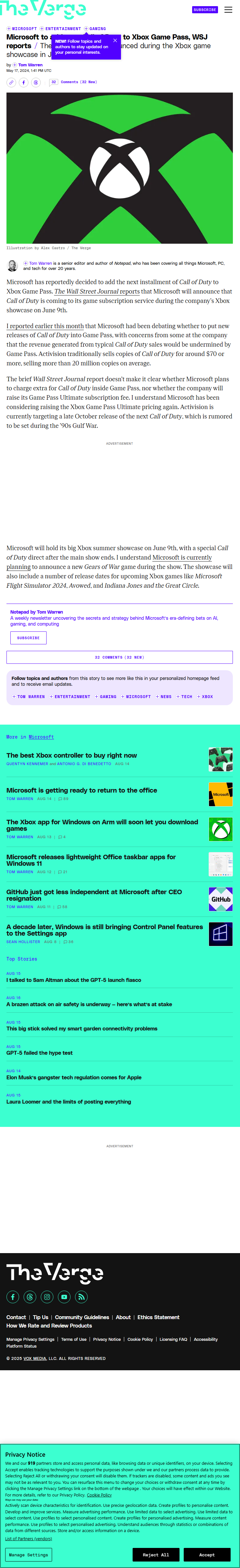 Microsoft to Bring Call of Duty to Xbox Game Pass