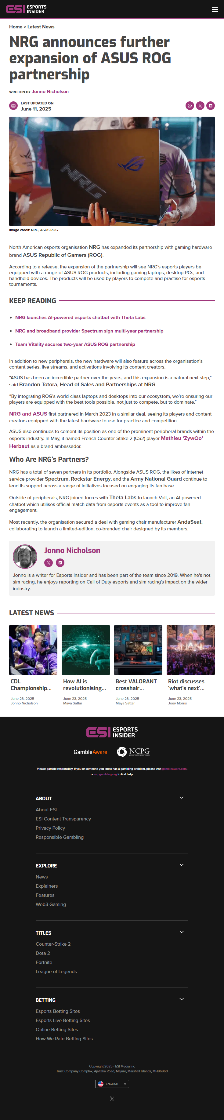 “ASUS has been an incredible partner over the years, and this expansion is a natural next step,” said Brandon Totora, Head of Sales and Partnerships at NRG. “By integrating ROG’s world-class laptops and desktops into our ecosystem, we’re ensuring our players are equipped with the best tools possible, not just to compete, but to dominate.”