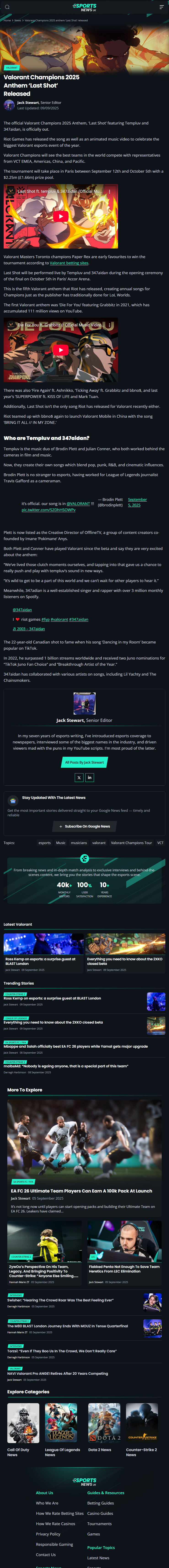 Adding to this Riot Games announced, "Last Shot" will take center stage during the opening ceremony of the tournament's final on October 5th at Paris' Accor Arena. Both Templuv and 347aidan will perform the anthem live, adding a musical highlight to the already electrifying event.