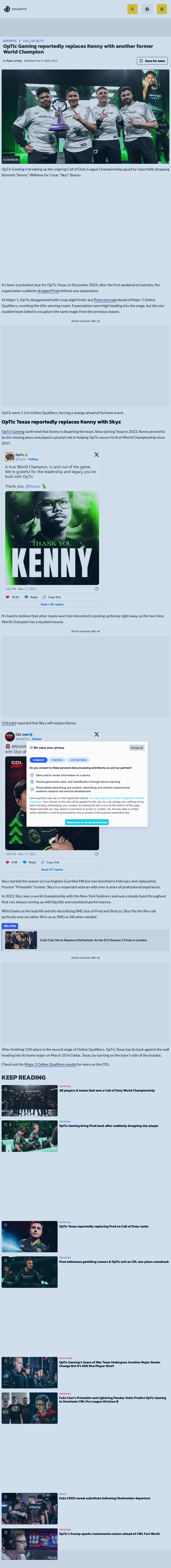 OpTic Texas has bid farewell to veteran Call of Duty pro player Kenny, expressing their gratitude for his contributions to the team since joining the starting roster. However, recent struggles have led to his departure from the squad as the team attempts to turn their fortunes around ahead of Major II.