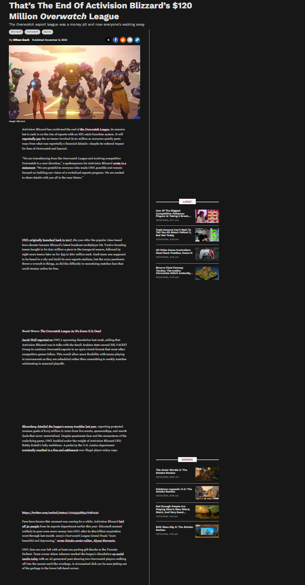 Activision Blizzard has officially announced the ending of the Overwatch League, following a vote taken by the franchise owners. Yesterday OverActive Media announced its decision to leave the league to investors. As the 20 teams disband, the company is said to be compensating them with a total of $120m.