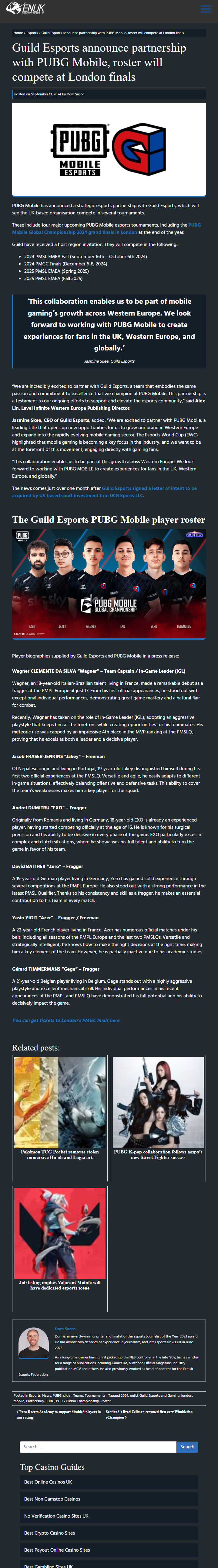 Jasmine Skee, CEO of Guild Esports, stated “We are excited to partner with PUBG MOBILE, a leading title that opens up new opportunities for us to grow our brand in Western Europe and expand into the rapidly evolving mobile gaming sector."