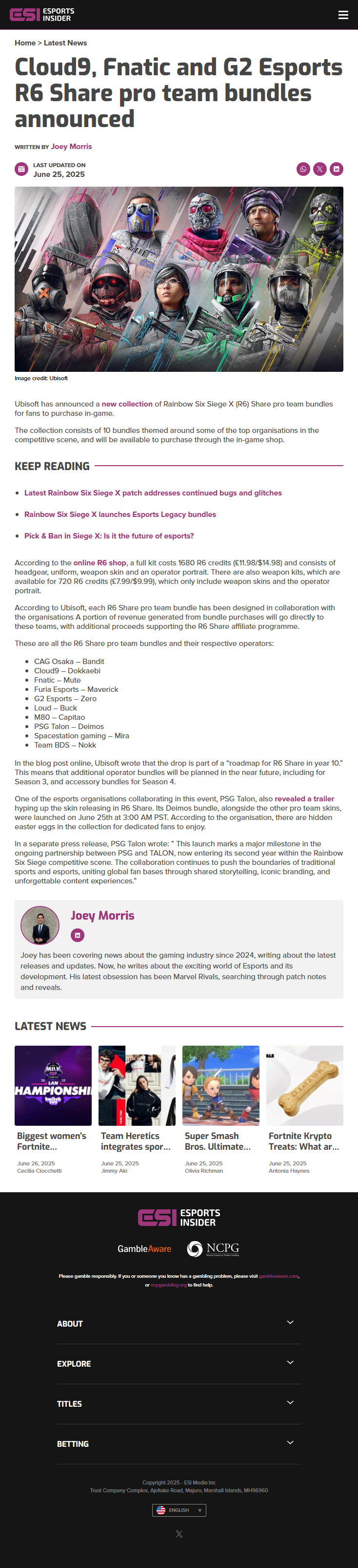 “A portion of revenue generated from bundle purchases will go directly to these teams, with additional proceeds supporting the R6 Share affiliate programme,” Ubisoft explained.