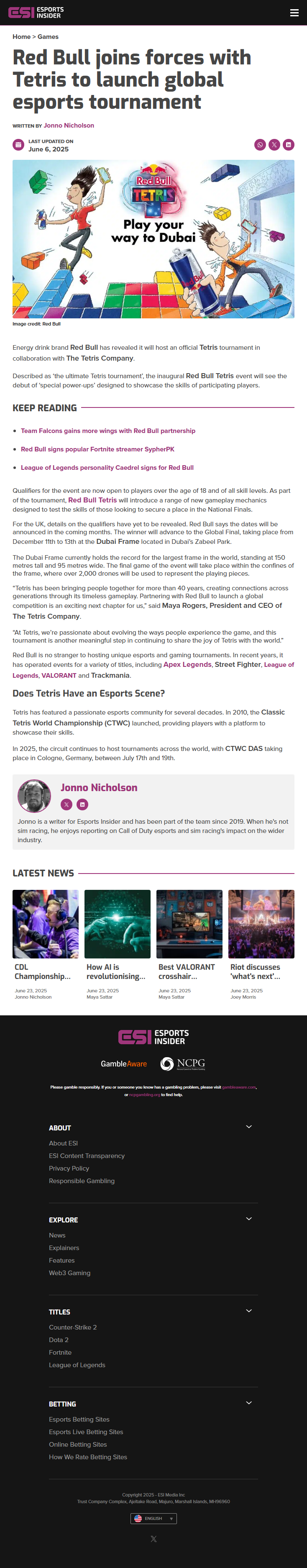 “Tetris has been bringing people together for more than 40 years,” said Maya Rogers, CEO of The Tetris Company. “Partnering with Red Bull to launch a global competition is an exciting next chapter.”