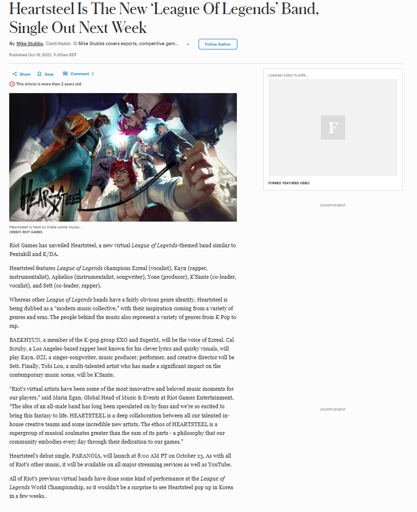 Maria Egan, Global Head of Music & Events at Riot Games Entertainment stated “The idea of an all-male band has long been speculated on by fans and we’re so excited to bring this fantasy to life. HEARTSTEEL is a deep collaboration between all our talented in-house creative teams and some incredible new artists. The ethos of HEARTSTEEL is a supergroup of musical soulmates greater than the sum of its parts - a philosophy that our community embodies every day through their dedication to our games.”