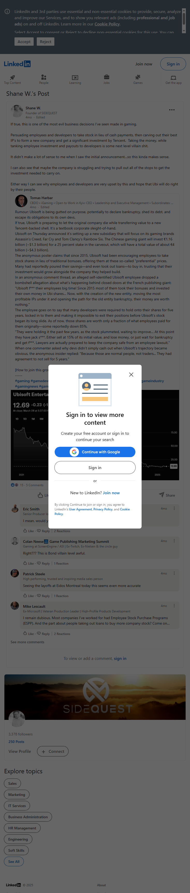 However, the company’s recent actions, including the creation of the new subsidiary and potential plans for bankruptcy, have led to accusations of betrayal. The whistleblower claims that the shares are now nearly worthless, with some employees facing losses of up to 85% of their original investment. They were reportedly locked into holding these shares for five years, unable to sell or exit their positions even as Ubisoft’s stock value steadily declined.