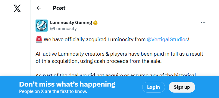 The announcement came via official channels on X , confirming Maida's return. As part of the deal, current players and content creators affiliated with Luminosity Gaming received full payment from the sale proceeds. Any lingering historical debts or unpaid obligations from before this transition remain with the prior owner, Vertiqal Studios. Luminosity Gaming's path has been anything but straightforward in recent years. Originally founded by Maida in 2015, the org rose to prominence with major wins, including the 2016 MLG Columbus Major in CS:GO with its Brazilian roster. It later became part of Enthusiast Gaming in 2019.In August 2025, Enthusiast sold Luminosity Gaming to Vertiqal Studios, a gaming and lifestyle company focused on growing content creation across platforms like YouTube, Twitch, and social media.