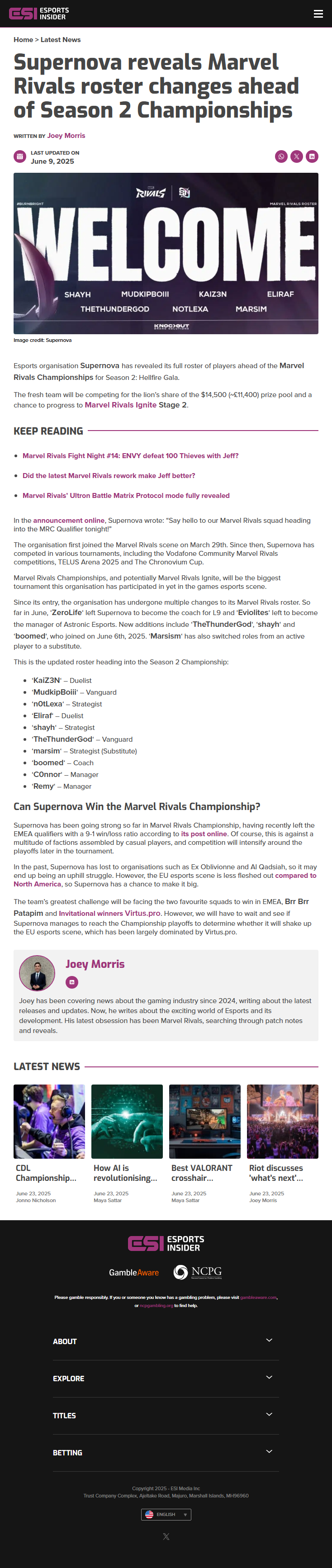 Supernova entered the Marvel Rivals esports scene earlier this year on March 29, and has since taken part in various competitions including the Vodafone Community Marvel Rivals events, TELUS Arena 2025, and The Chronovium Cup. However, the Hellfire Gala Championship and possible progression into Ignite represent the organization’s biggest opportunity yet in the game’s competitive circuit.