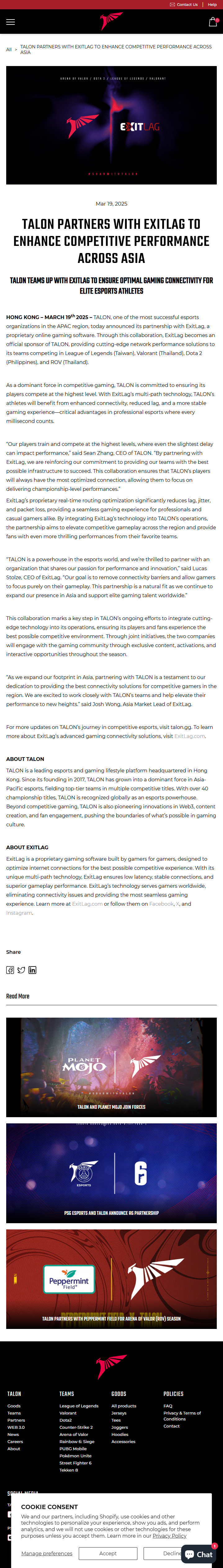 “TALON is a powerhouse in the esports world, and we’re thrilled to partner with an organization that shares our passion for performance and innovation,” said Lucas Stolze, CEO of ExitLag. “Our goal is to remove connectivity barriers and allow gamers to focus purely on their gameplay. This partnership is a natural fit as we continue to expand our presence in Asia and support elite gaming talent worldwide.”
