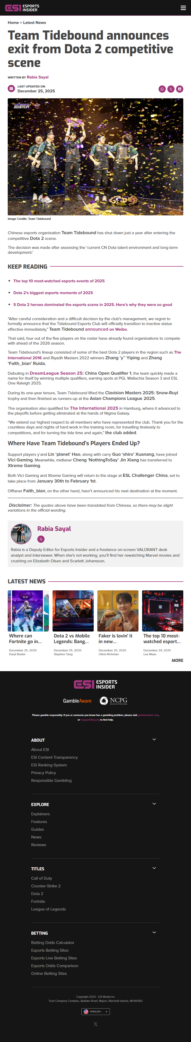 The decision was made after evaluating the “current CN Dota talent environment and long-term development.” In a statement shared on Weibo, the organization confirmed the news, saying: “After careful consideration and a difficult decision by the club’s management, we regret to formally announce that the Tidebound Esports Club will officially transition to inactive status effective immediately.”