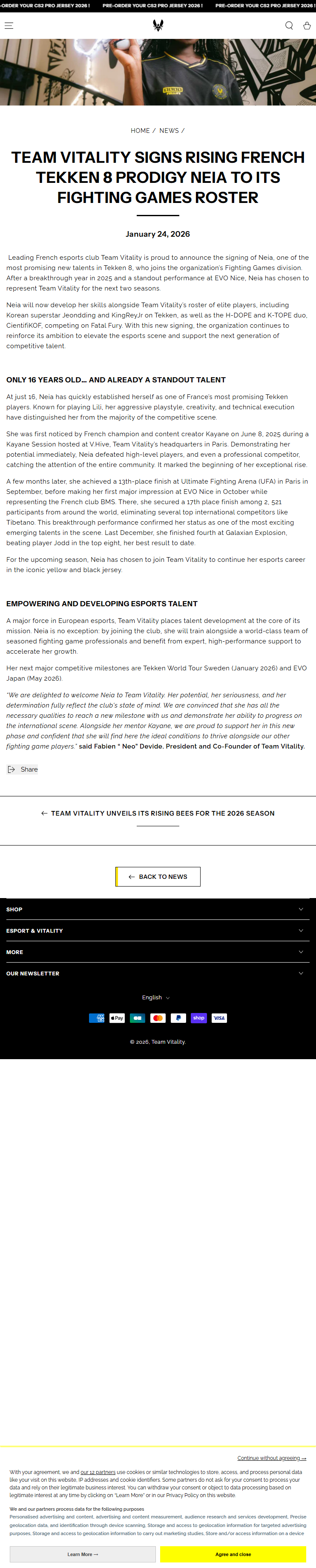 French esports team Team Vitality has added a fresh face to its Fighting Games lineup with the signing of 16-year-old Tekken 8 standout Neia. The announcement, made on January 24, 2026, highlights the organization’s push to strengthen its presence in the Tekken scene.