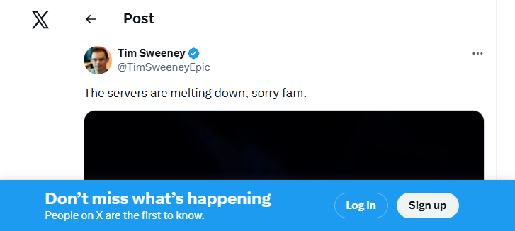 Epic Games founder and CEO Tim Sweeney addressed the situation directly on social media. In an initial post acknowledging the disruption, he wrote: