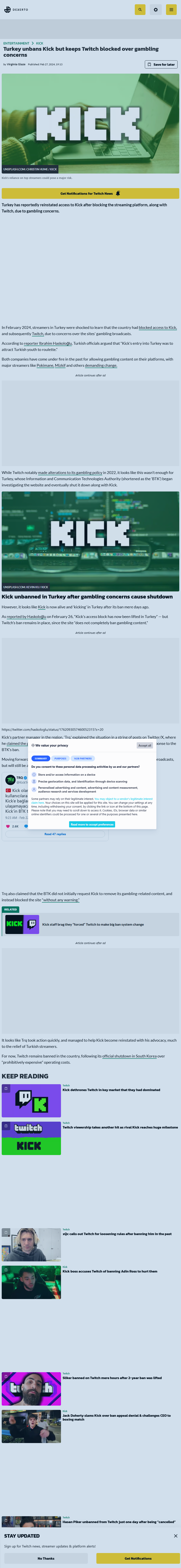 According to recent reports, the Turkish National Lottery Administration banned Twitch for gambling concerns. The Turkish government also banned KICK recently for the same reasons however the ban was lifted after 24 hours. Turkish authorities have asserted that Kick's introduction to the Turkish market was primarily aimed at enticing Turkish youth into engaging in roulette-style gambling activities. Both Kick and Twitch have faced criticism in the past for hosting gambling content on their platforms. In Turkey, gambling is subject to strict regulation overseen by the National Lottery Administration, a government agency tasked with enforcing regulations on all forms of betting games within the country.