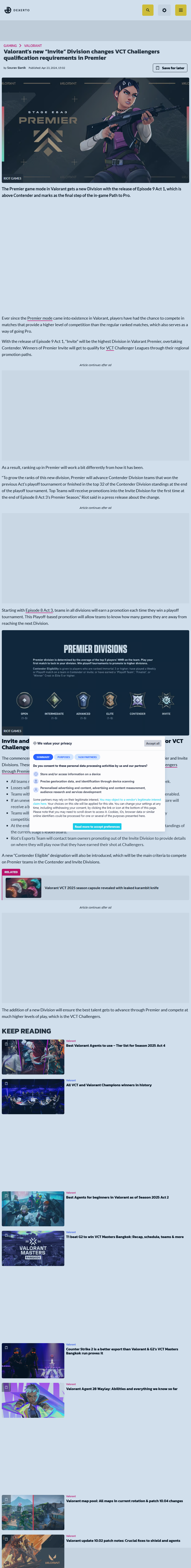According to recent news, RIot Games revealed the VALORANT Invite Division. The upcoming Division will stand as the pinnacle of competition within VALORANT's in-game Premier Mode. Victorious teams in the Premier Invite can secure qualification for Challenger Leagues globally.
