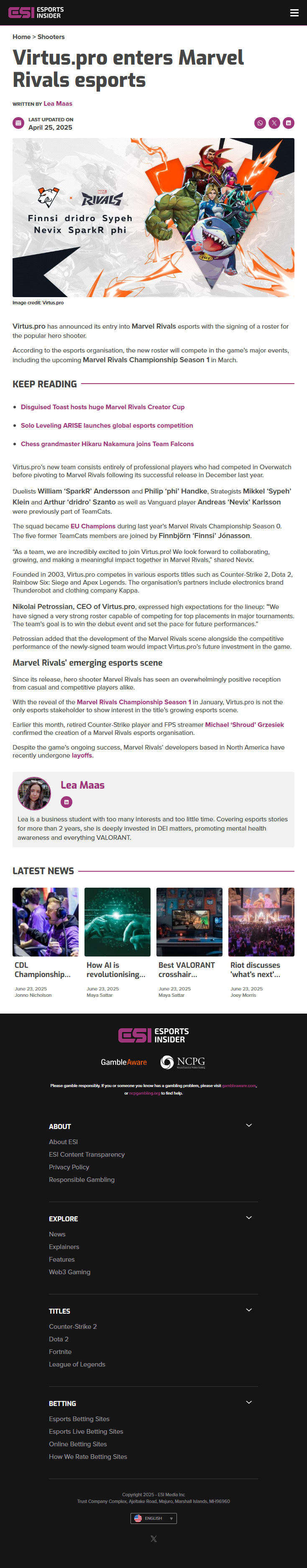 “We’re thrilled to join Virtus.pro as a team! We’re eager to collaborate, grow, and make a lasting impact in Marvel Rivals,” Nevix shared.