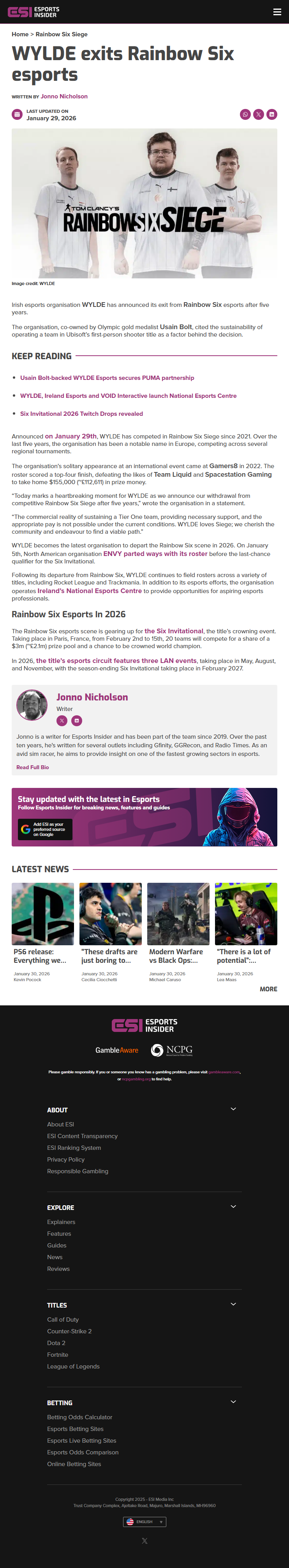 This isn't a one-off in Rainbow Six esports. WYLDE joins a growing list of orgs leaving Rainbow Six Siege in 2026. Just on January 5th. North American squad ENVY cut ties with their roster right before the last-chance qualifier for Six Invitational.