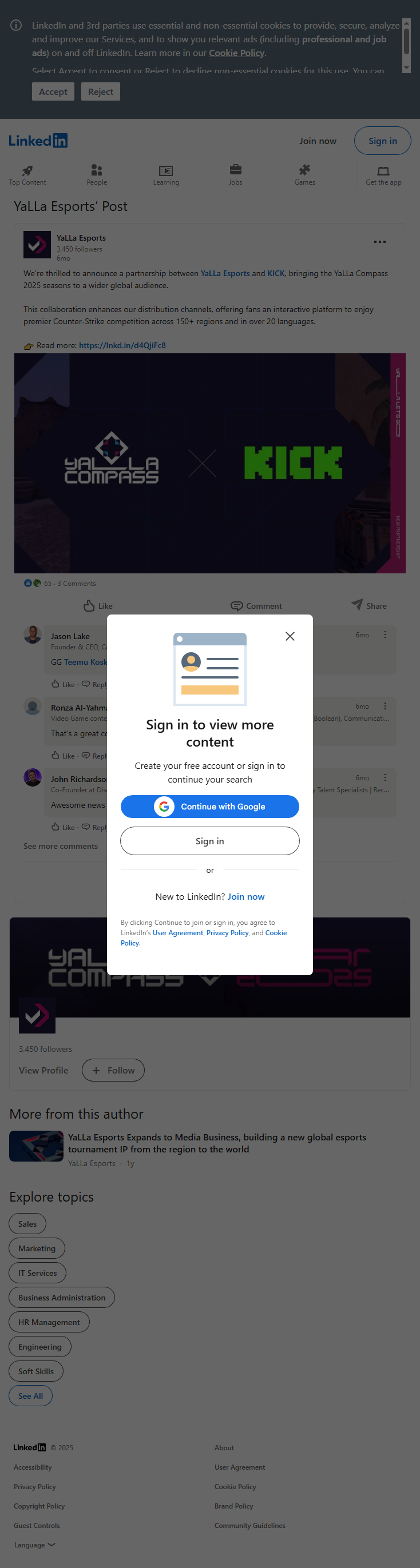YaLLa Esports, the organizer of the YaLLa Compass tournament, announceD a new partnership with KICK to bring the YaLLa Compass 2025 seasons to a global audience. The event will be broadcasted in over 150 regions and more than 20 languages.